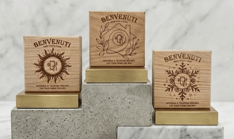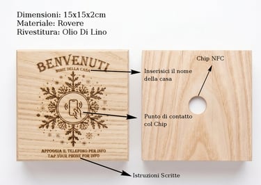 Non solo utile ma anche valido esteticamente. Inserisci il nome della casa: noi lo incideremo al laser con precisione millimetrica. Elimina il disordine di fogli e QR code con un unico elemento d’arredo minimale e ordinato.